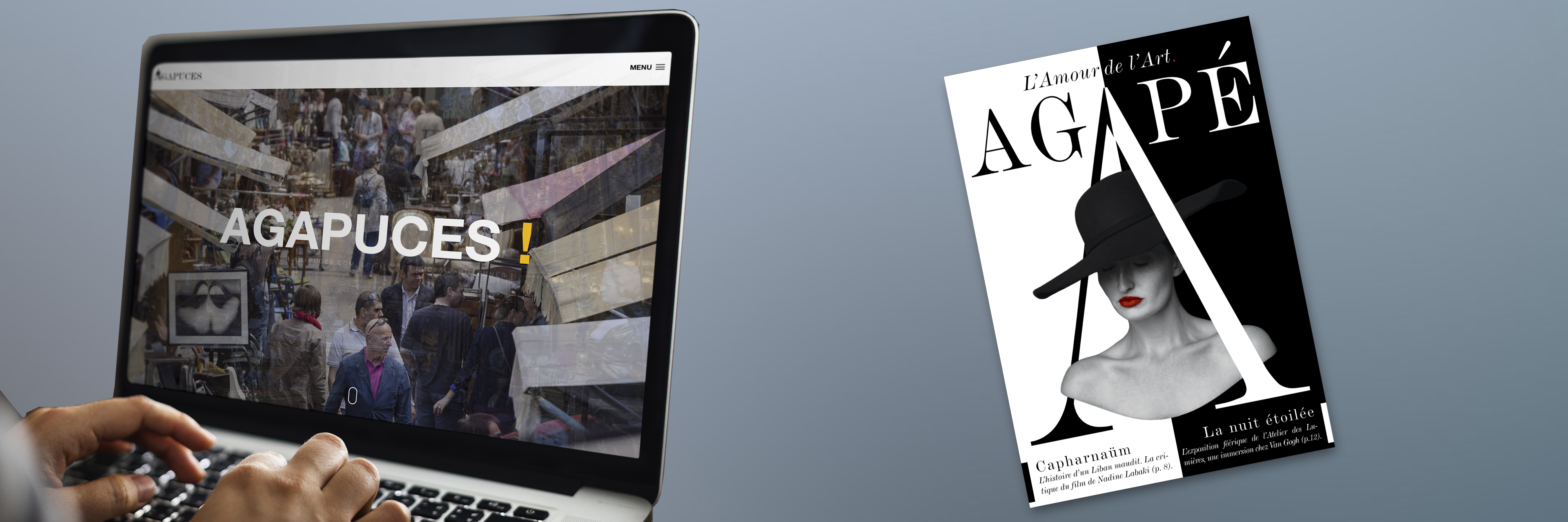 C'est de cette passion de l'art pluridisciplinaire qu'est né le magazine Agapé. Agapuces, comme son nom l'indique est né de la contraction d'Agapé et des Puces (Puces Parisiennes). Ce site internet a donc pour vocation de vous faire découvrir les puces de Paris et tous ses secrets !