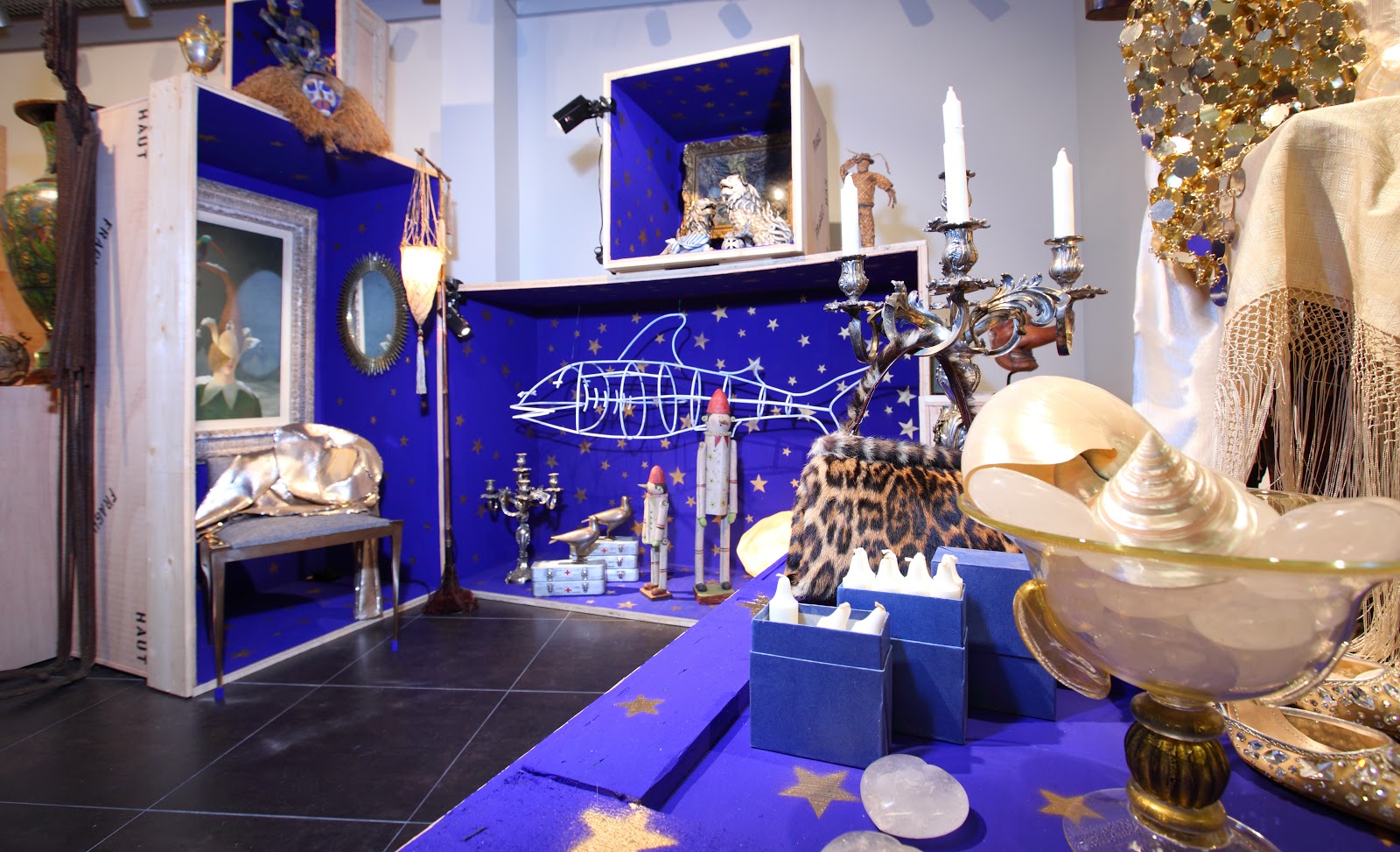 Afin de parvenir à l'ambiance féerique recherchée, Alain Tchillinguirian a choisi d'exposer tous ces objets divers et variés dans des boîtes de couleur bleu nuit recouvertes d’étoiles représentant chacune des univers bien distincts. Les maisons de poupées en bois côtoient des sculptures : une association originale qui pourrait être le reflet de l’âme d’enfant du décorateur..